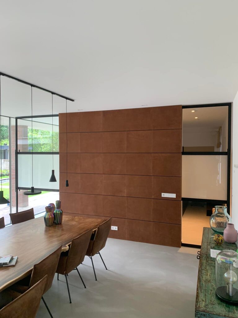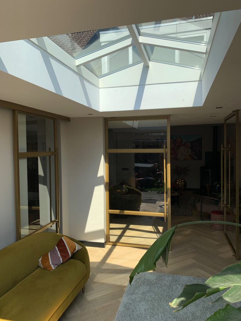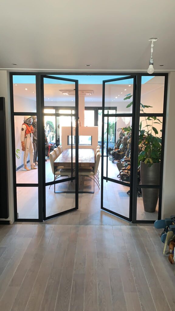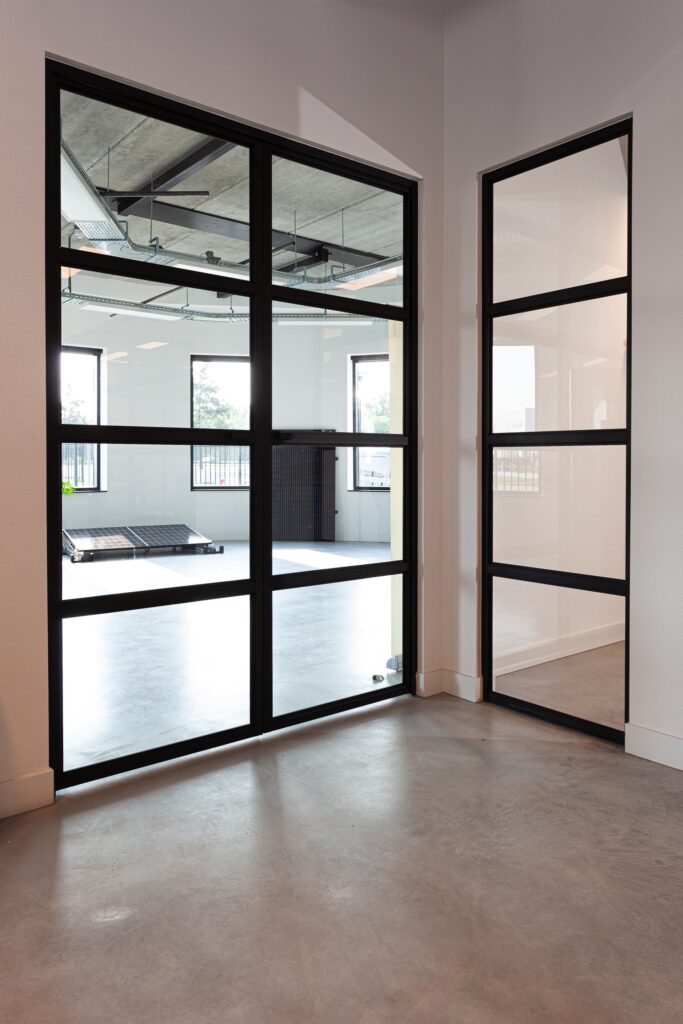 Goudkleurige taatsdeuren voor een woonhuis. Een stalen trapconstructie met glasrailing en glazen balustrade rond de vide. Ruim 250 meter scheidingswanden van staal en glas in een kantoorruimte. De duurzame stalen producten van AETC passen in elk interieur. Grasduin door ons portfolio en laat je inspireren.